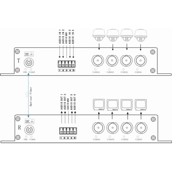 4CH TVI Audio Fiber Converter also named as 4CH TVI audio fiber transmitter and receiver,which support 4CH 720p / 25,720p / 30,720p / 50,720p / 60,1080p / 25,1080p / 30 TVI coaxial analog HD video and 4CH unidirection audio over a single fiber optical fiber , using self-developed non-compressed digital photoelectric conversion technology, , to achieve megapixels level analog HD video point to point highly and reliably transmission over fiber without delay,